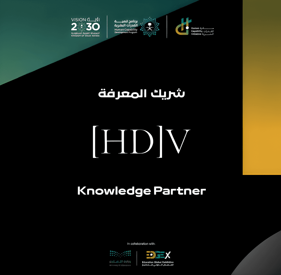 HDV was pleased to be nominated to be an official Knowledge Partner for the Human Capability Initiative in 2025, the flagship event under the Human Capability Development Program which is Chaired by His Royal Highness the Crown Prince. As part of this nomination, HDV was awarded on stage in Riyadh by His Excellency the Minister of Education Yousef al-Benyan.